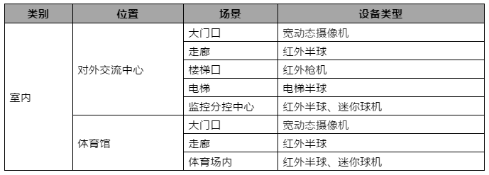 根據(jù)高校不同的應(yīng)用場(chǎng)景,需要選擇不同的前端攝像機(jī),以達(dá)到最優(yōu)的視頻監(jiān)控效果。具體點(diǎn)位分布如下: